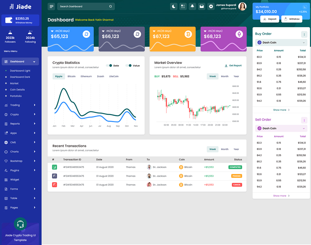 Jiade – Crypto Trading Admin Dashboard Bootstrap Template